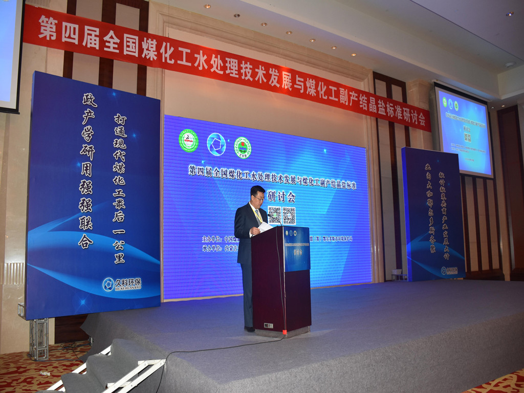 5月9日至10日,由中國煤炭加工利用協(xié)會、中國新型煤化工綠色發(fā)展聯(lián)盟(籌)、鄂爾多斯市環(huán)保局聯(lián)合主辦,久科環(huán)保承辦第四屆全國煤化工水處理技術(shù)發(fā)展與煤化工副產(chǎn)結(jié)晶鹽標(biāo)準(zhǔn)研討會在鄂爾多斯舉行。中國煤炭加工利用協(xié)會張紹強理事長主持了會議,鄂爾多斯市人民政府副秘書長崔永忠為會議開幕致辭。久科環(huán)保董事長李戰(zhàn)勝代表承辦單位做了致辭。