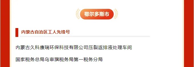 為表彰先進(jìn)、樹(shù)立典型,大力弘揚(yáng)勞模精神、勞動(dòng)精神、工匠精神,激勵(lì)廣大職工愛(ài)崗敬業(yè),營(yíng)造勞動(dòng)光榮的社會(huì)風(fēng)氣,4月28日上午,內(nèi)蒙古自治區(qū)慶?!拔逡弧眹?guó)際勞動(dòng)節(jié)暨自治區(qū)五一勞動(dòng)獎(jiǎng)表彰大會(huì)在呼和浩特市召開(kāi),揭曉2024年內(nèi)蒙古自治區(qū)五一勞動(dòng)獎(jiǎng)以及“工人先鋒號(hào)”獲獎(jiǎng)名單,內(nèi)蒙古久科康瑞環(huán)保科技有限公司壓裂返排液處理車(chē)間榮獲“”內(nèi)蒙古自治區(qū)工人先鋒號(hào)。